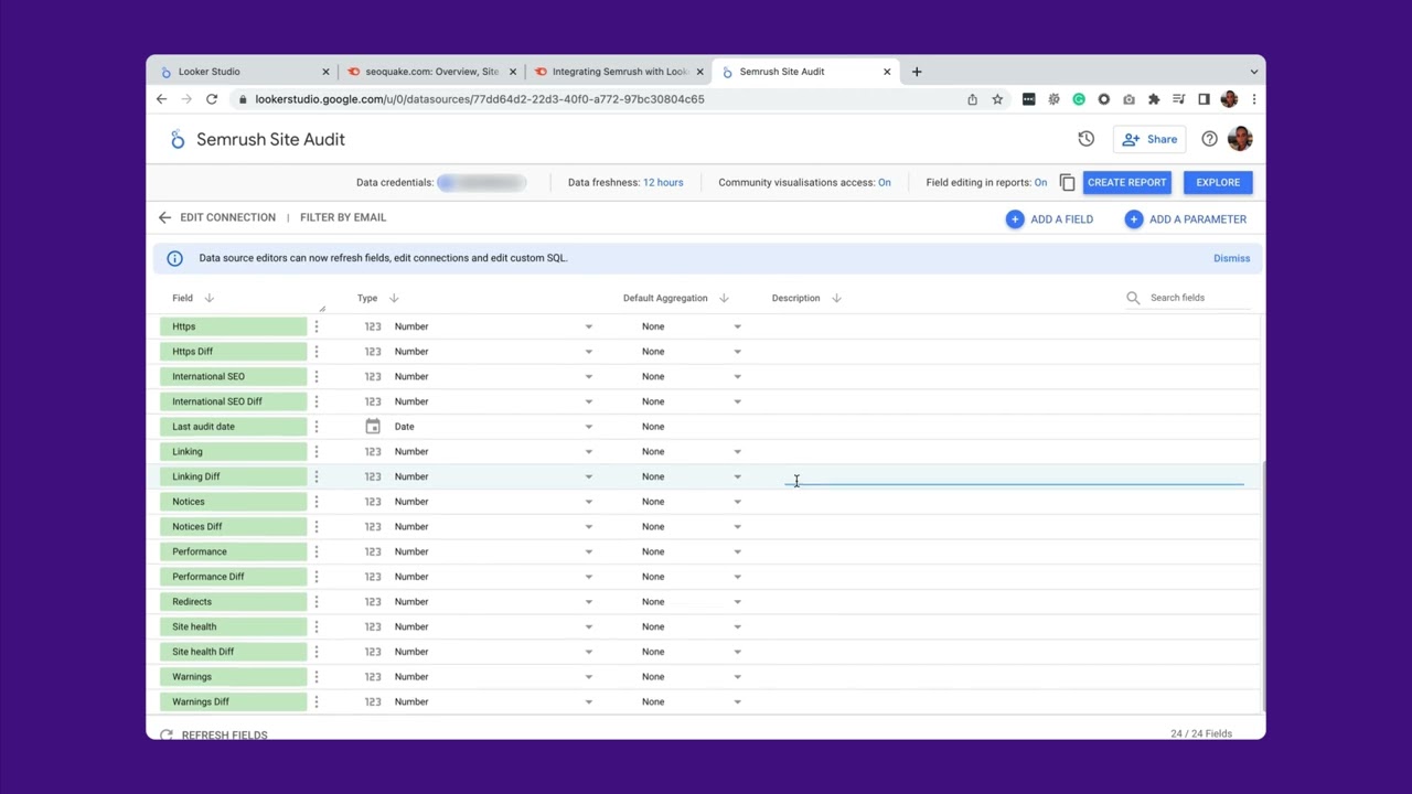 To configure the connection to Semrush, you need to authorize both your Google and Semrush accounts to access data and add it to Looker Studio.